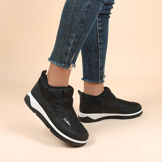 Bottes de neige pour femmes, chaussures courtes et chaudes à talons plats