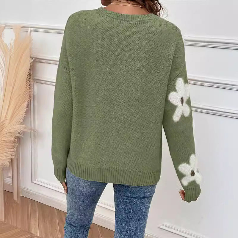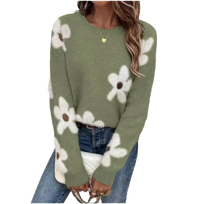 Mode pull col rond manches longues pull Jacquard couleur unie haut tricoté pour les femmes