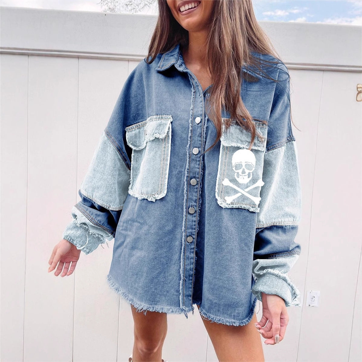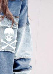 Manteau en denim à blocs de couleurs d'Halloween pour femmes
