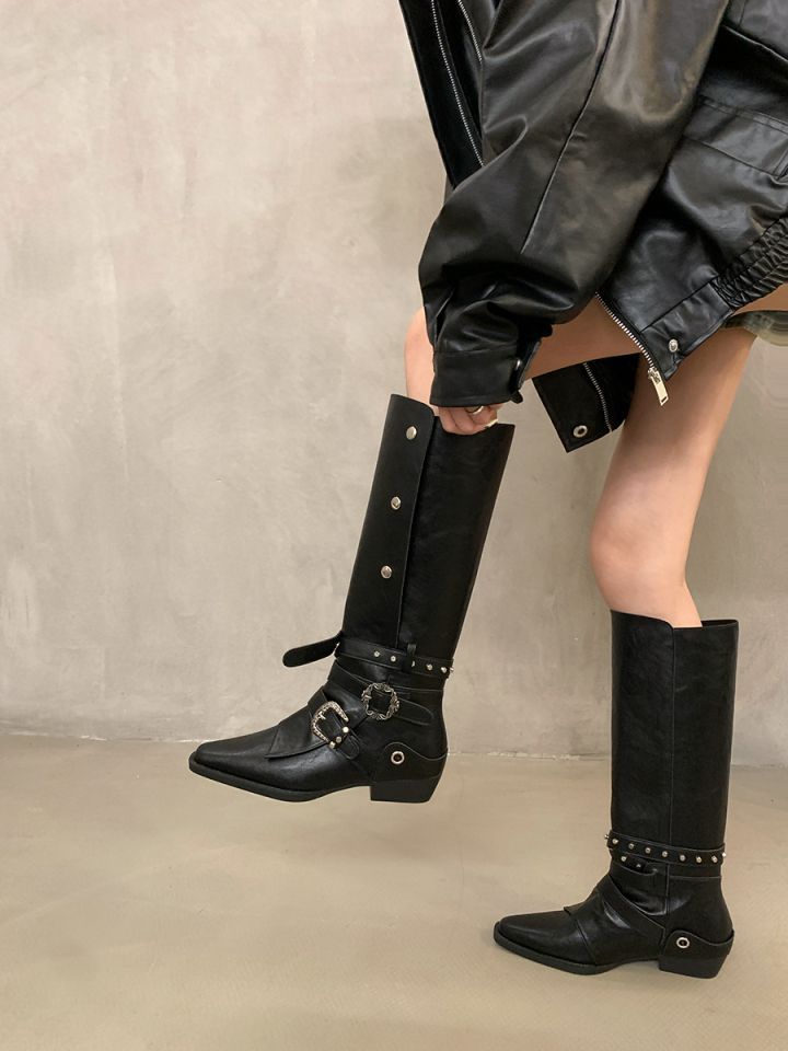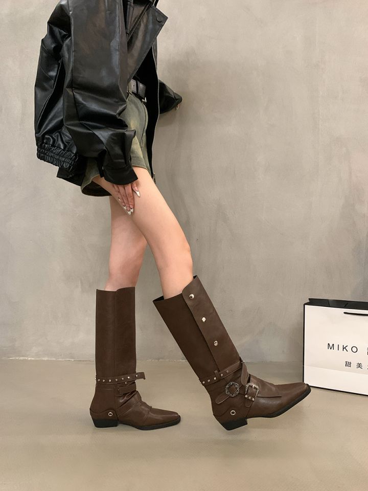 Bottes de chevalier hautes à rivets rétro pour femmes